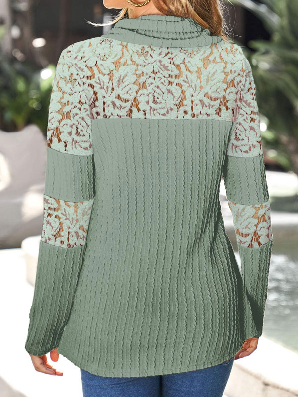 Lace Patchwork Long Sleeve Cowl Neck Sweatshirt