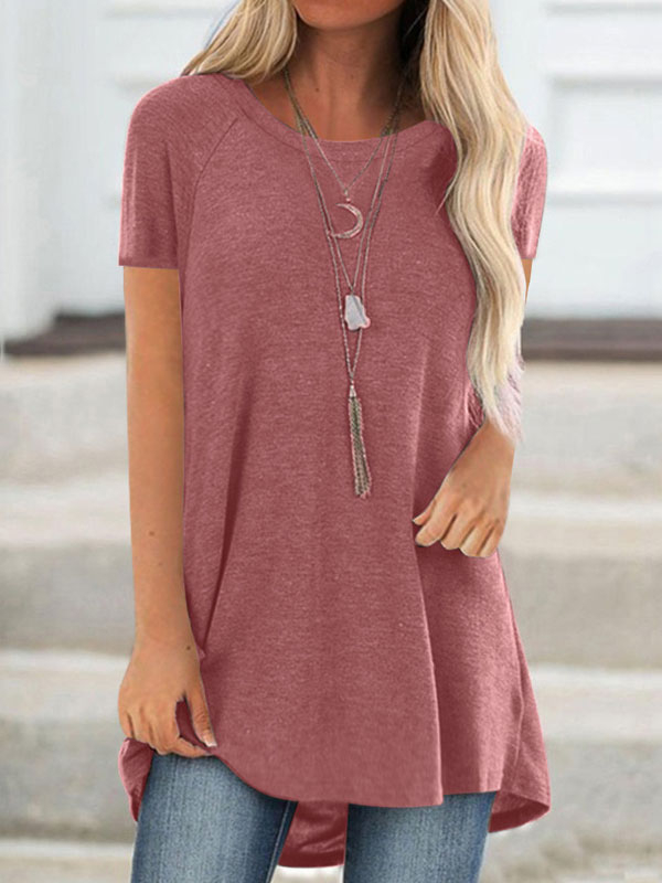 Round Neck Loose Comfortable Breathable Ladies Short Sleeves