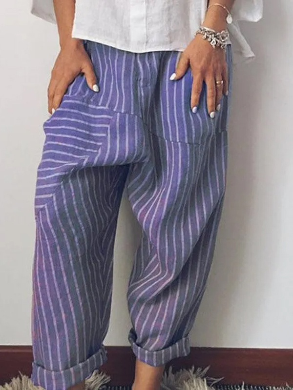 Trendy Striped Wide-Leg Linen Trousers