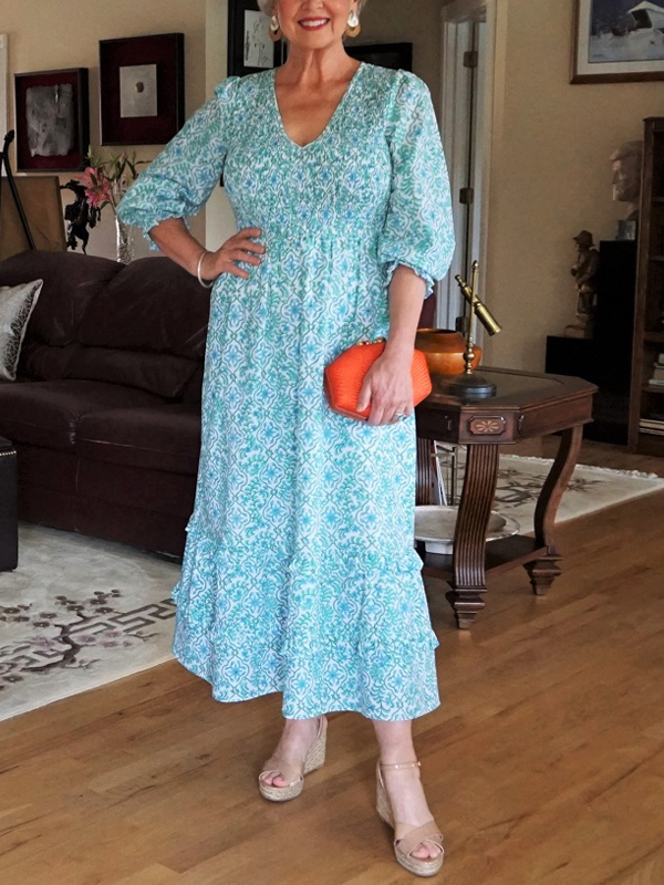V-Neck Print Maxi Dress