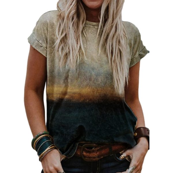 Western Vintage Print Crew Neck Short Sleeve T-Shirt